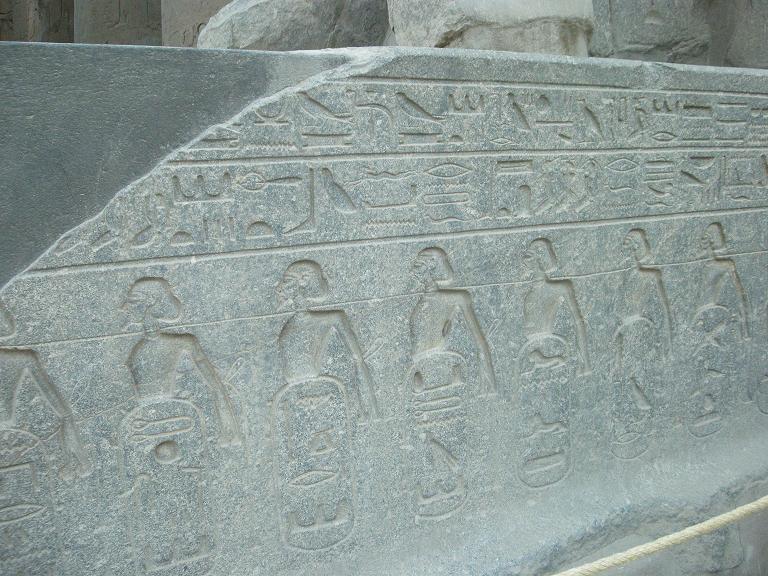 ↓ラムセス2世の座像の台に描かれている『奴隷の絵』。