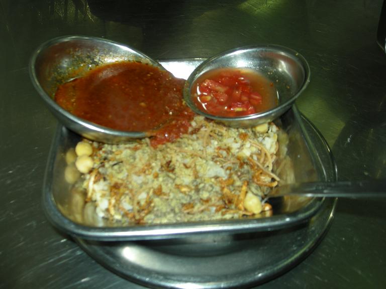 レンズ豆、揚げたたまねぎが混ざった物に、
