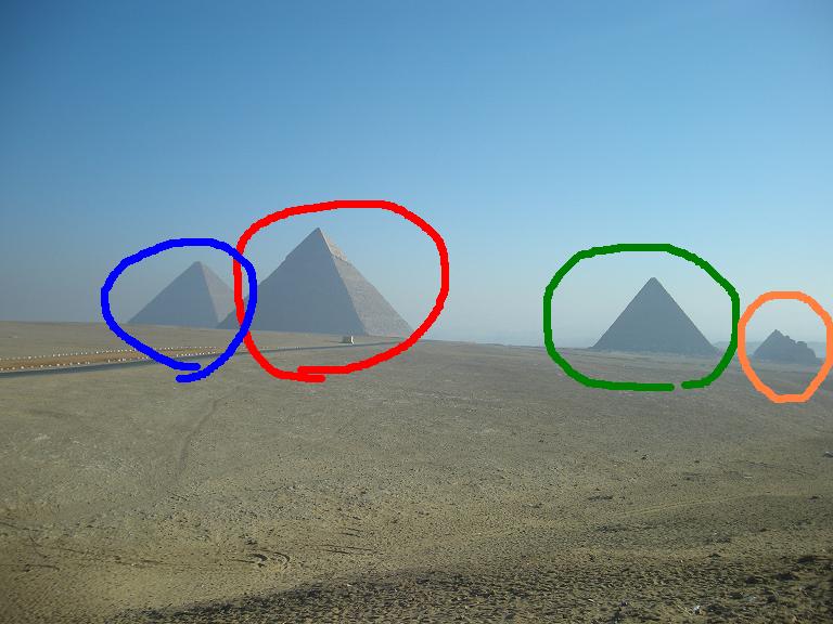 橙の○→クフ王の奥さんのピラミッド